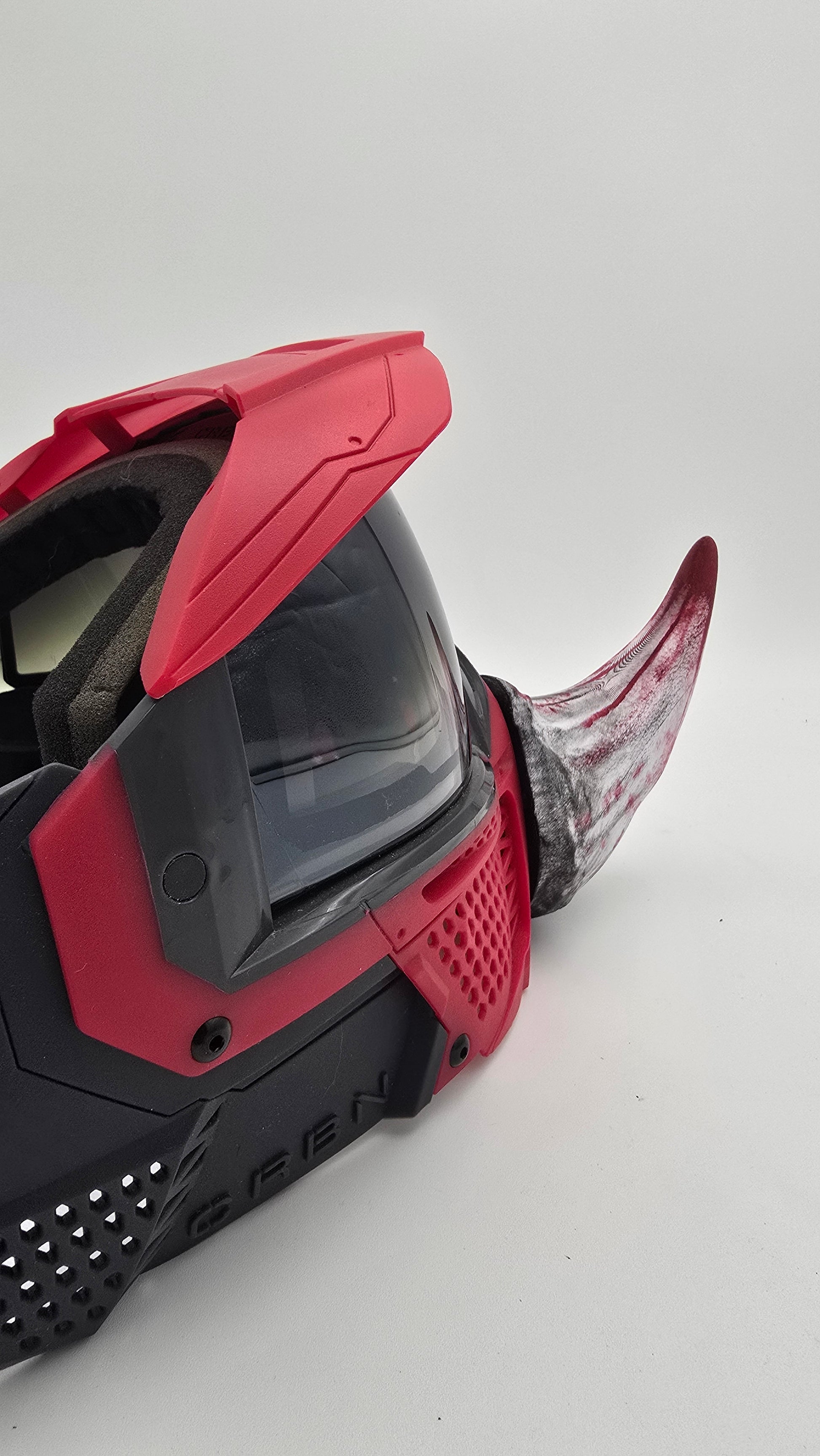 Become the ultimate paintball/airsoft Legend with our Bloody Rhino horn attachment for paintball goggles! This fierce and realistic-looking horn easily mounts onto your goggles for an extra level of intimidation on the battlefield. Just remember to be responsible and aware of your fierce appearance. We aren't liable for any enemies you may impale!