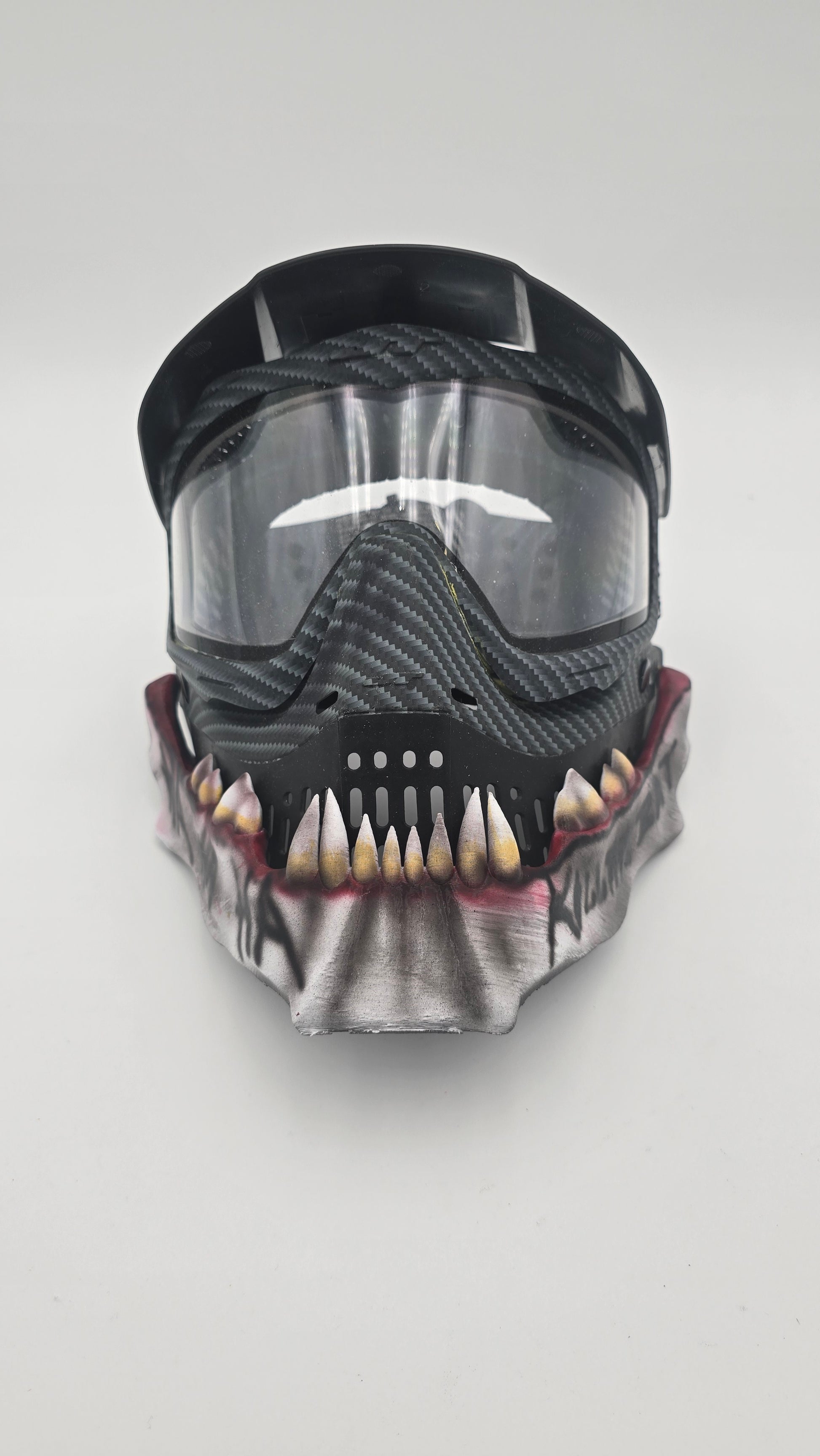 Spread fear and horror to the young souls in the field of paintball or airsoft with this intimidating mask accessory. Everyone and I mean everyone turn their heads to look at whoever sports these Jawz. It also gives better protection from paint around the mouth area (We all know how good that tastes). Cosplayers and any other hobbyists are welcome to explore Jawz!